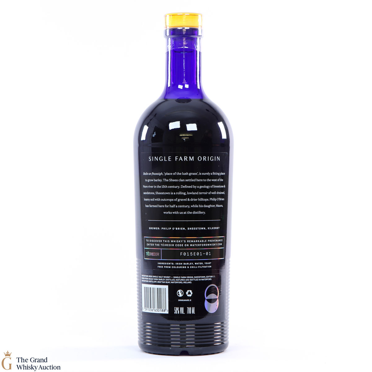 Sheestown 1.1 – This is also one of the first releases from the Waterford Distillery's Single Farm Origin series. This single malt Irish whisky was distilled using a single vintage of grown just outside the historic town of Kilkenny on an undulating, well-drained, lowland terroir predominantly derived from limestone, by Phil O’Brien, father of one of the distillery workers.