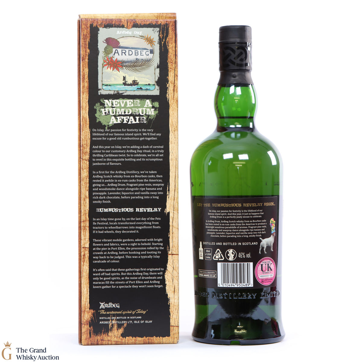 This is the 2019 Ardbeg Drum Limited edition. The Ardbeg Drum is a non-age-statement single malt matured in ex-Bourbon casks and then finished in ex-rum casks from the Americas. It was created to celebrate Ardbeg Day 2019 (June 1) held during the Islay Festival of Music & Malt (Fèis Ìle).