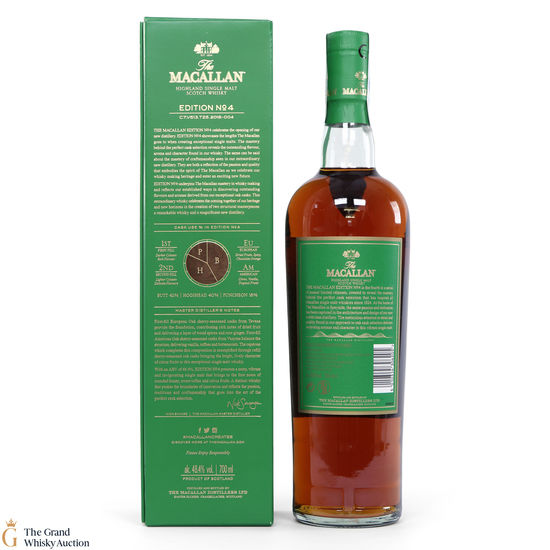The fourth release in the Edition Series from The Macallan, this Speyside single malt is a celebration of the distillery's whisky making heritage, combining a unique selection of oak cask styles. Edition No.4 reflects the craftsmanship and pioneering design of the new Macallan distillery.