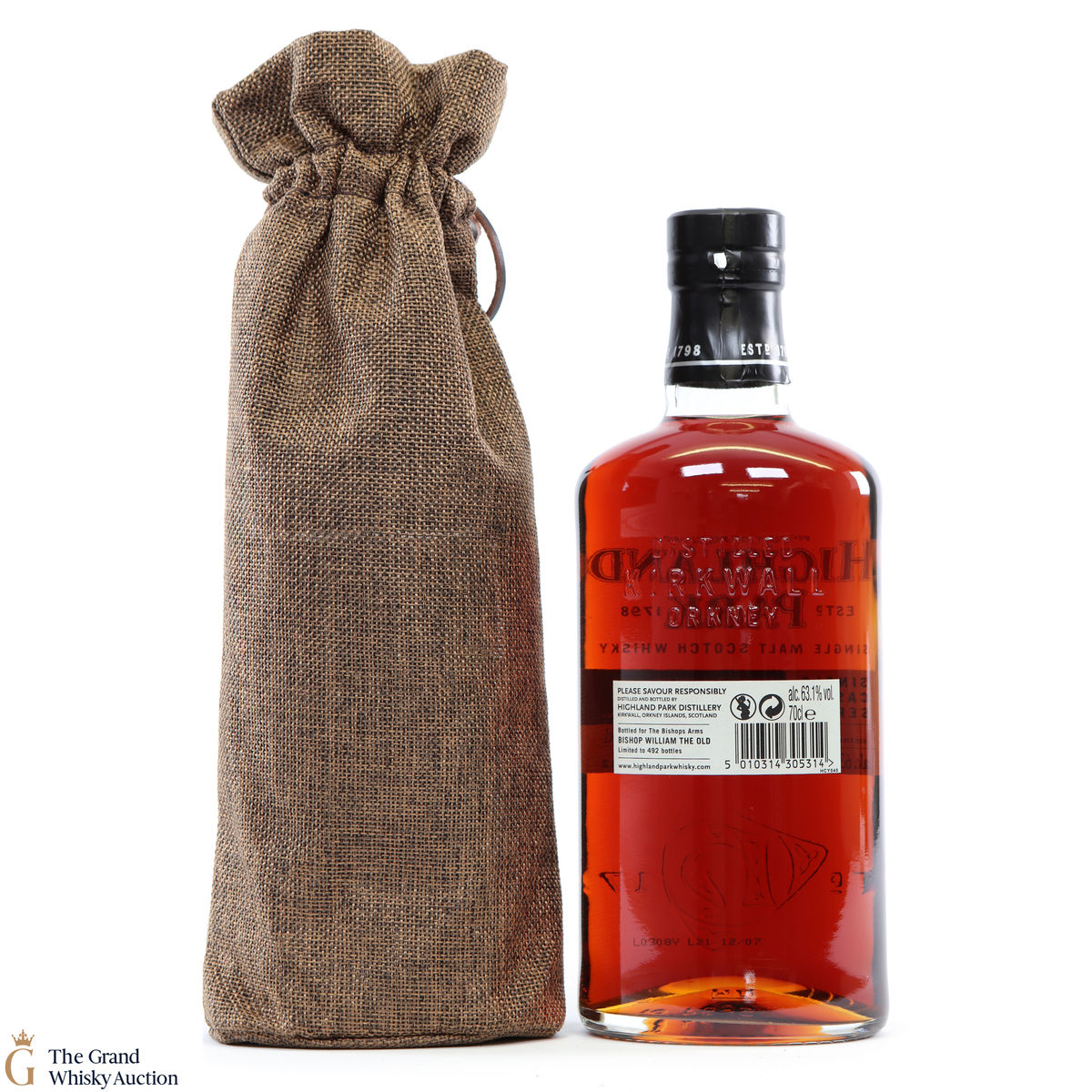 This bottling is part of Highland Park's Single Cask Series and was bottled exclusively for The Bishop Arms, which is a pub in Sweden. This 'William the Old' edition was distilled in 2004, and matured for 12 years in European Oak Sherry Butt #6712 and bottled at the cask strength of 63.1% ABV. With only 492 bottles available, this is a limited edition.