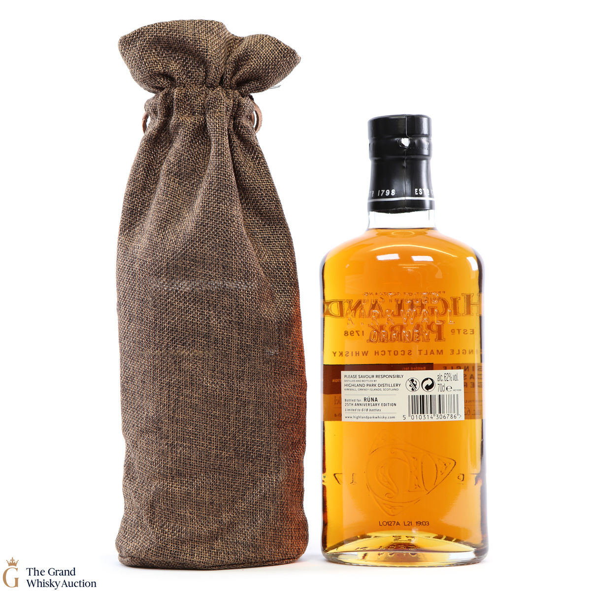 This bottling is part of Highland Park's Single Cask Series and was bottled exclusively for the 25th Anniversary of Runa. Distilled in 2004, this single malt was matured for 13 years in refill butt #6204 and bottled at the cask strength of 62% ABV. With only 618 bottles available, this is a limited edition.