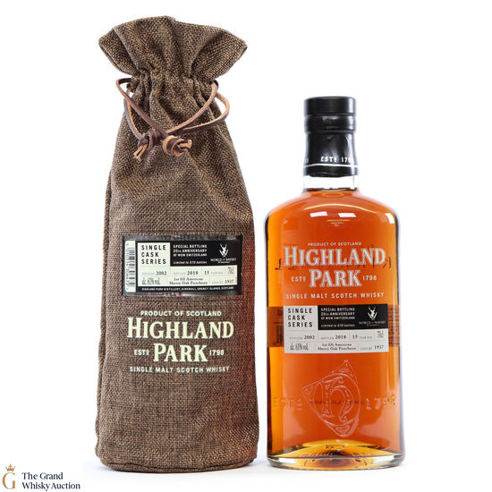 A 15-Year-Old 1992 vintage single cask Highland Park, bottled for World of Whisky (WoW) Switzerland's 20th anniversary in 2018.