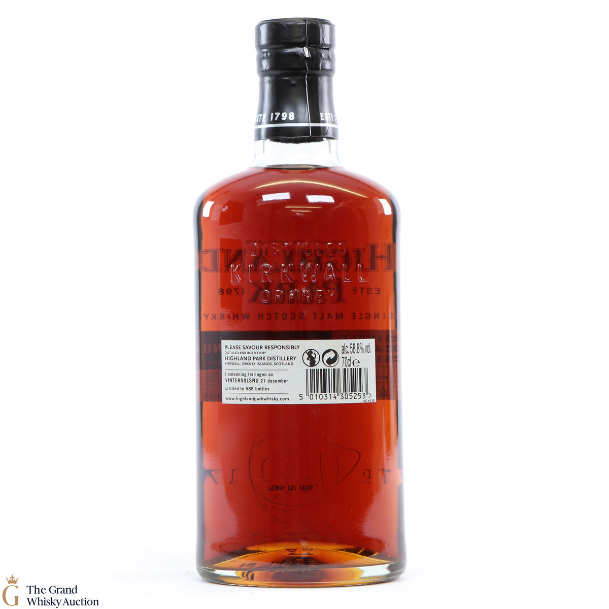 This bottling is part of Highland Park's Single Cask Series and was bottled as Vintersolsnu. Distilled in 2001, this single malt was matured for 16 years in European Oak Sherry Butt #651 at the cask strength of 58.8% ABV. With only 588 bottles available, this is a limited edition.