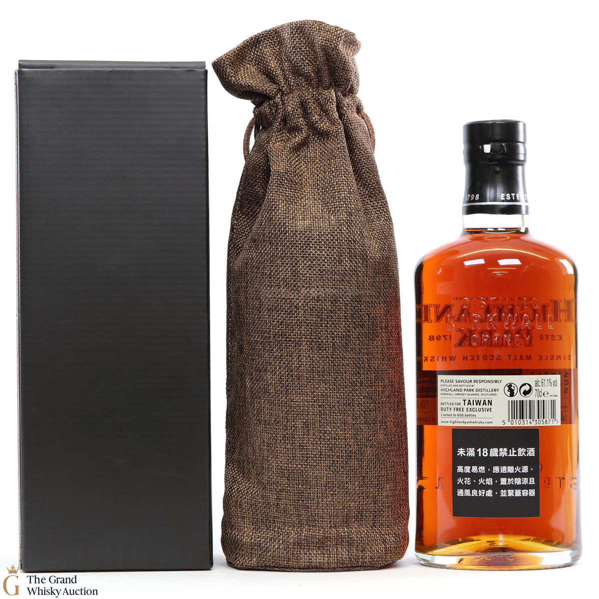 This 13 Year Old Highland Park was bottled as a Taiwan Duty-Free Exclusive release. It is part of Highland Park's Single Cask Series. Distilled in 2003, the single malt was matured in refill butt #5708 for 14 years and was bottled in 2017 at 61.1% ABV. This a limited release of just 600 bottles.