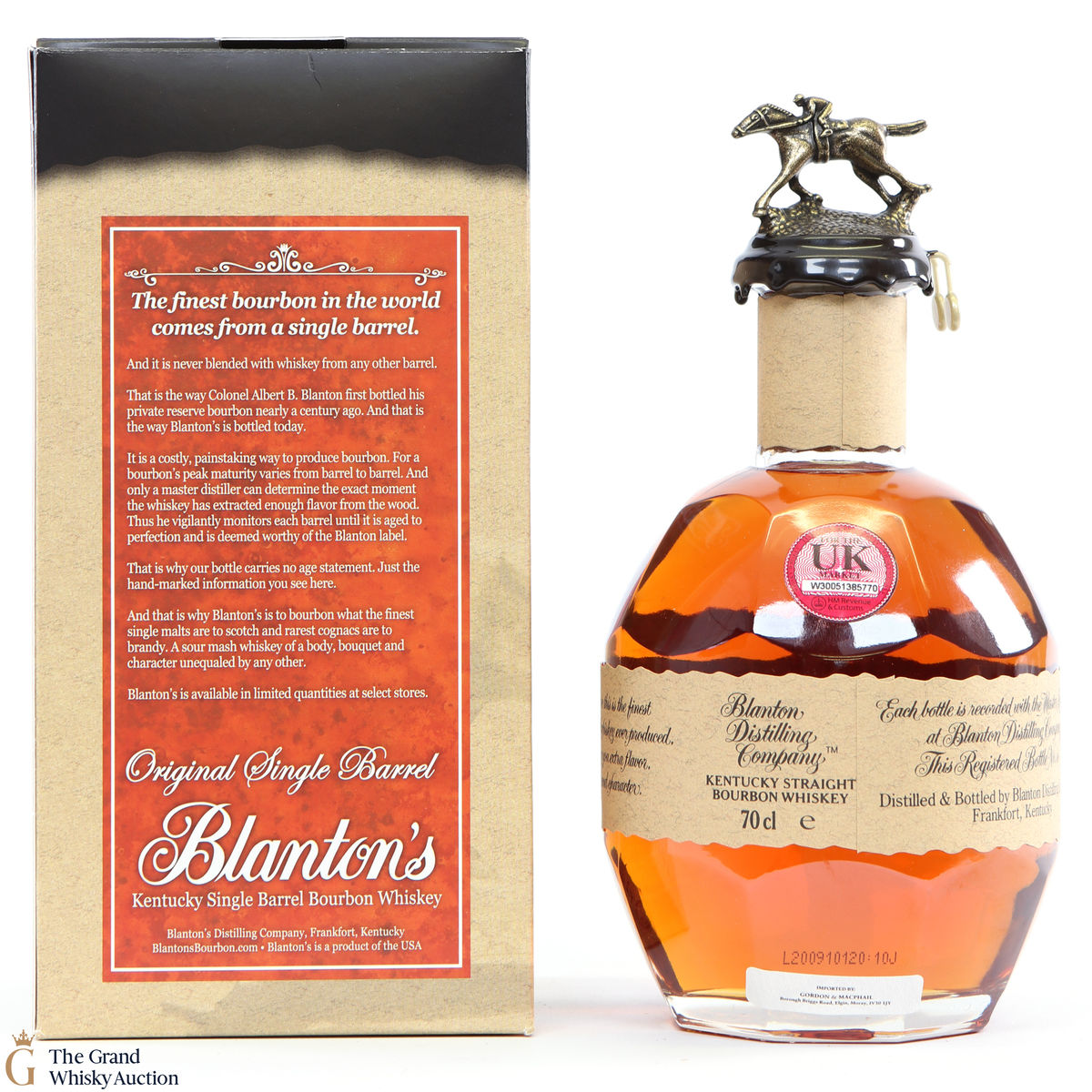 Blanton's Single Bourbon is normally 6 to 8-year-old bourbon, aged in Warehouse H at Buffalo Trace in the metal-clad warehouse at the distillery. The metal, transfers heat quicker than brick warehouses, allowing for faster ageing.