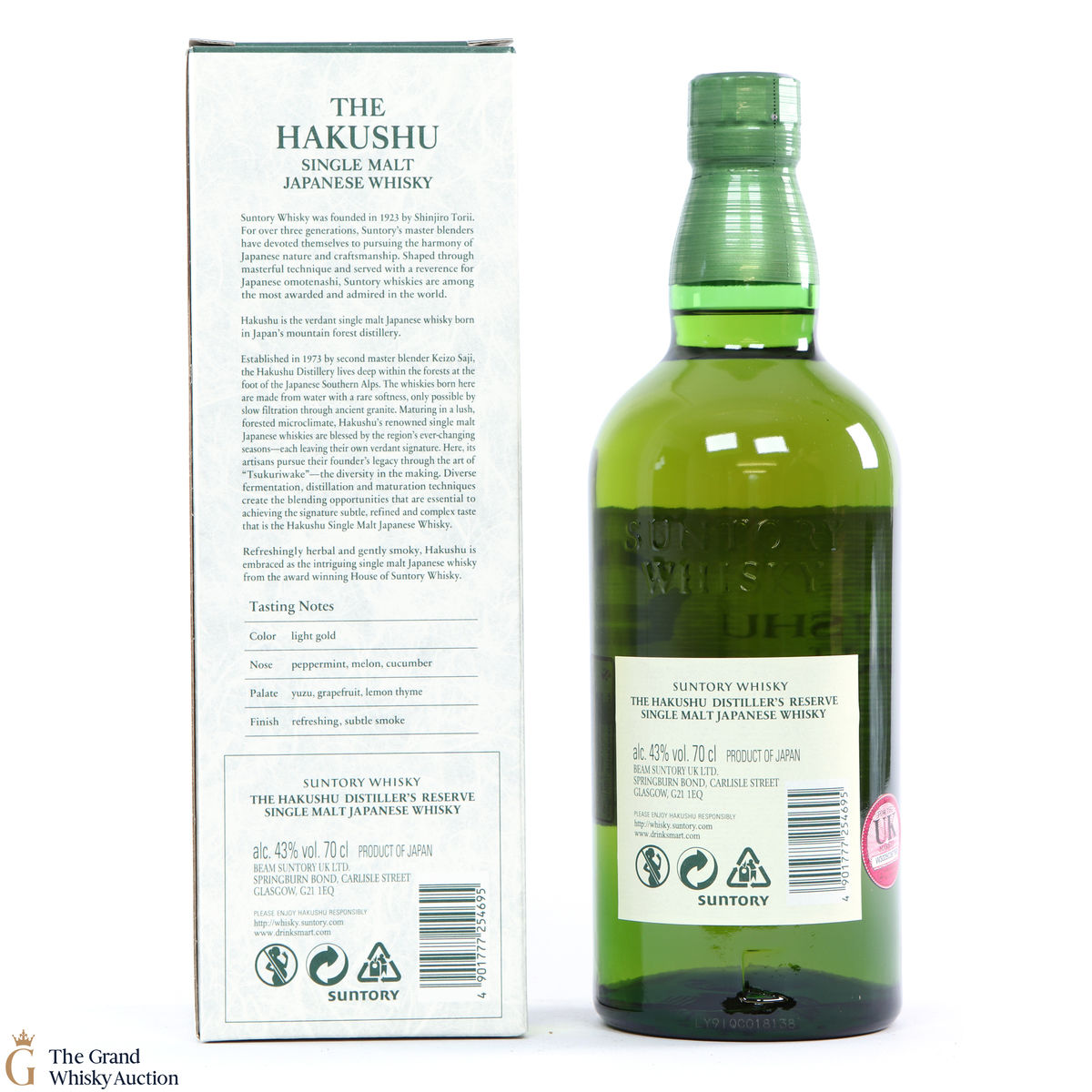 Hakushu Distiller's Reserve single malt whisky is a no-age-statement expression, that captures the smoky, herbaceous characteristics of their whiskies. This was one of two Spring 2014 release from Suntory.