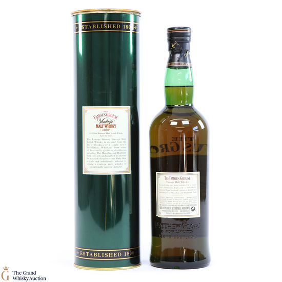 This is bottling of Famous Grouse - 1987 Vintage, which was released following the success of the 1986 vintage. This vatted malt from Famous Grouse includes Highland Park and Macallan.