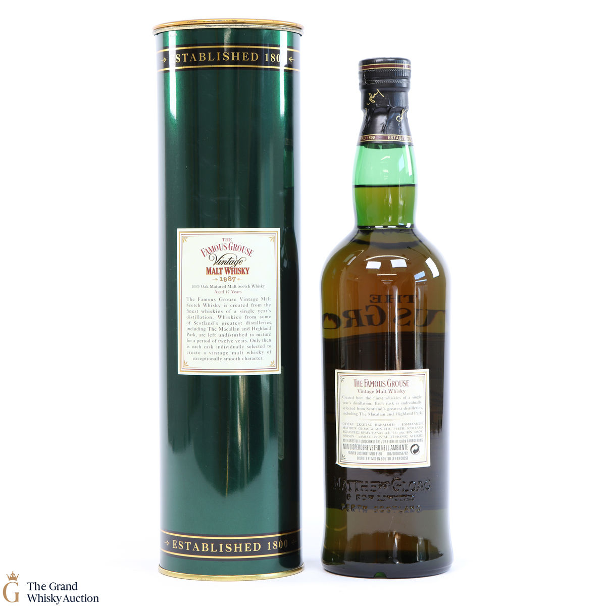 This is bottling of Famous Grouse - 1987 Vintage, which was released following the success of the 1986 vintage. This vatted malt from Famous Grouse includes Highland Park and Macallan.