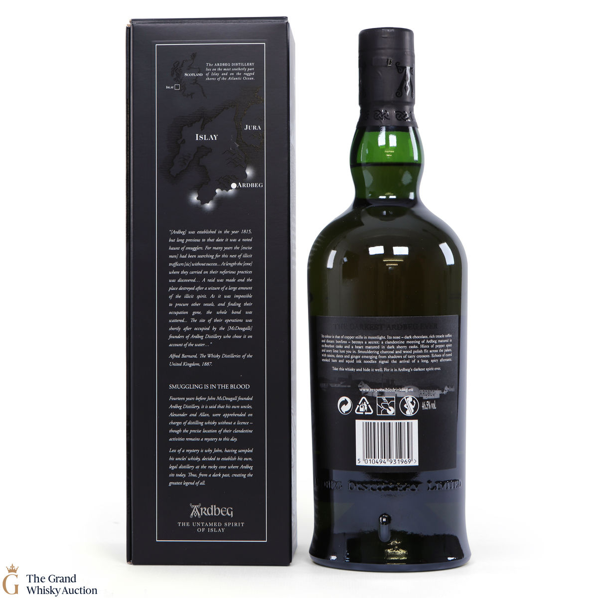 The Ardbeg Dark Cove was matured in ex-bourbon and dark Sherry casks to create ‘The Darkest Ardbeg Ever.’ This release, although bottled at a lower ABV than the Committee Release, has garnered great reviews, including one from Dramming.com's Oliver Klimek. It has notes of dark fruits, intense peat, ginger and bacon, with a long smoky finish. It is said to be created to honour the Islay coastline's shadowy past – although the colour isn’t too dark at all, the dark casks used provide plenty of oaky depth.