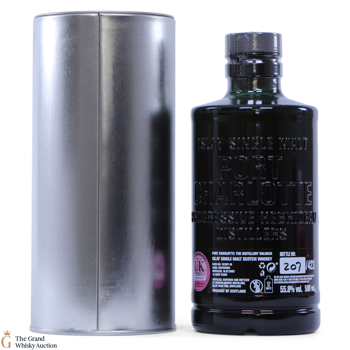 From Bruichladdich, one of the first Port Charlotte Valinch released after the 2018 rebranding. This single cask 14-year-old was distilled in Islay in 2003, matured in Sauternes cask #13/267-10. This is a distillery exclusive release of 423 bottles at 55.8% ABV. This is a 50cl bottling.