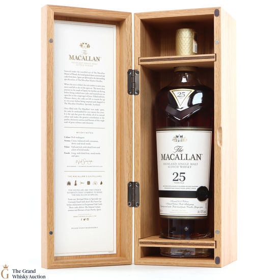 This is the 2019 edition of Macallan's 25 Year Old Sherry Oak. It comes with a stunning wooden presentation box. It's matured exclusively in hand-picked sherry oak casks from Jerez for a quarter of a century.