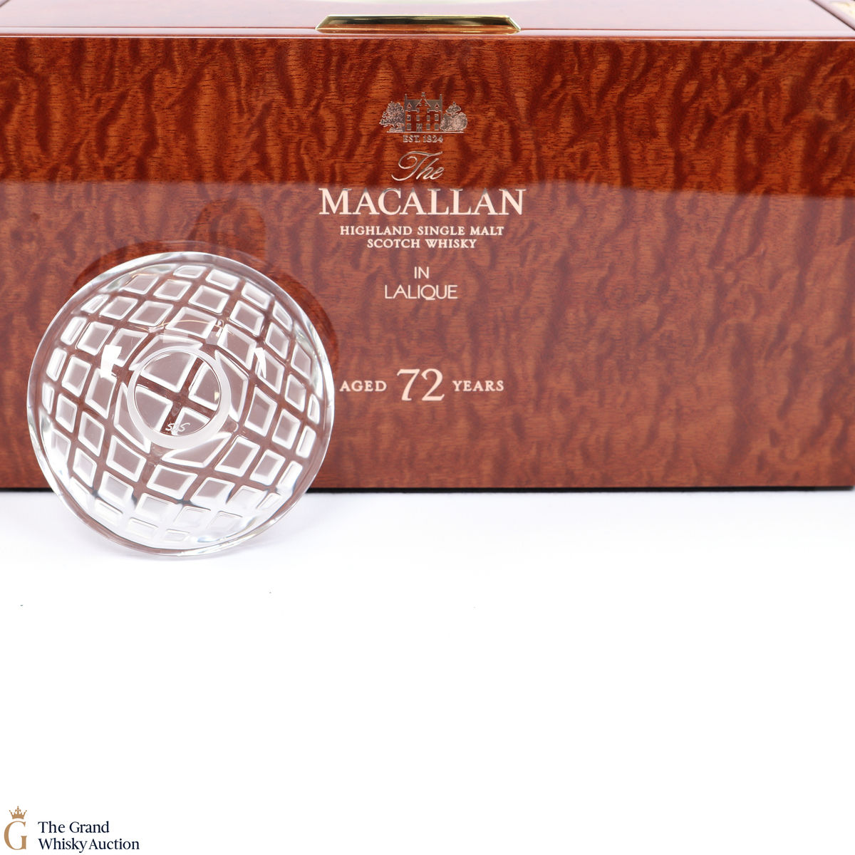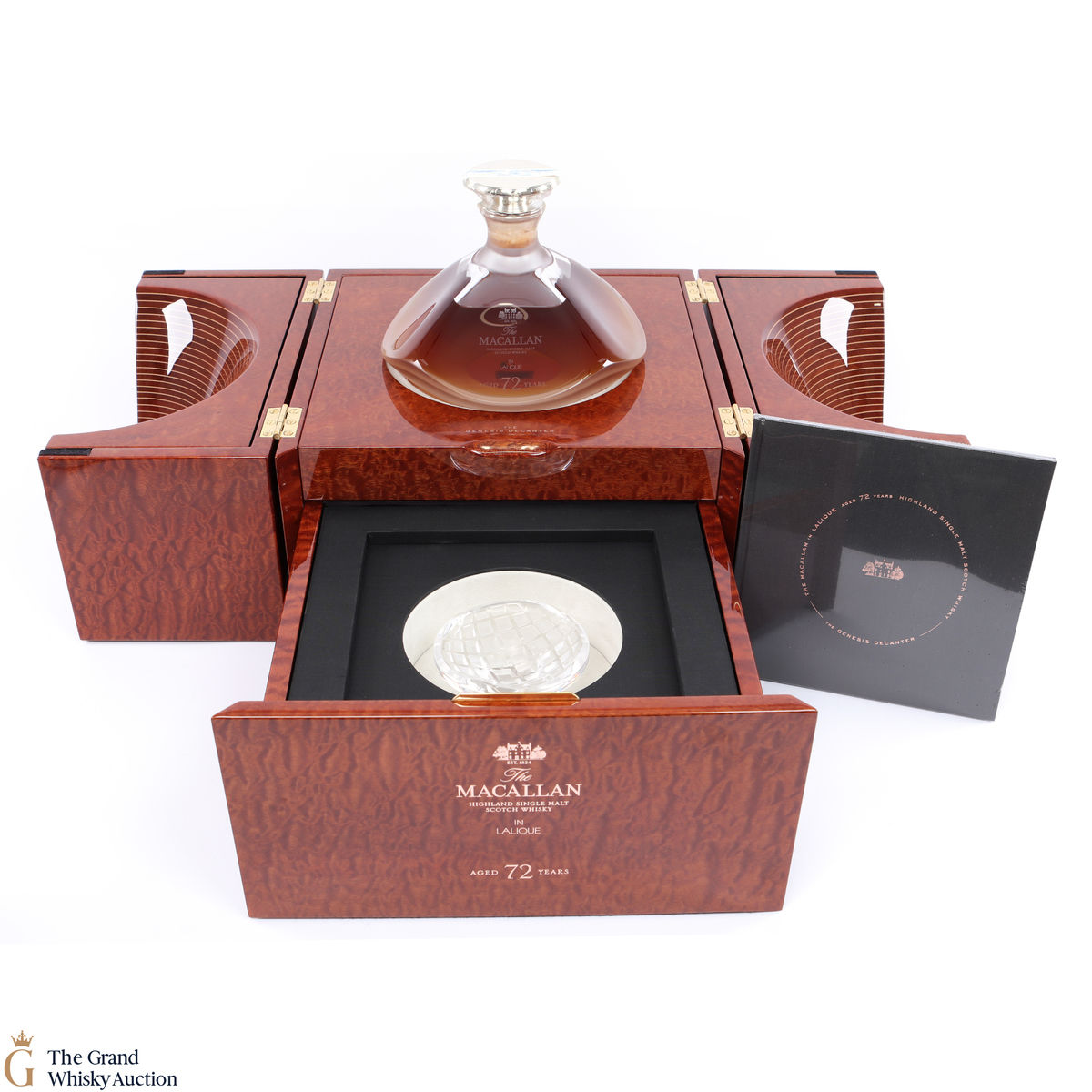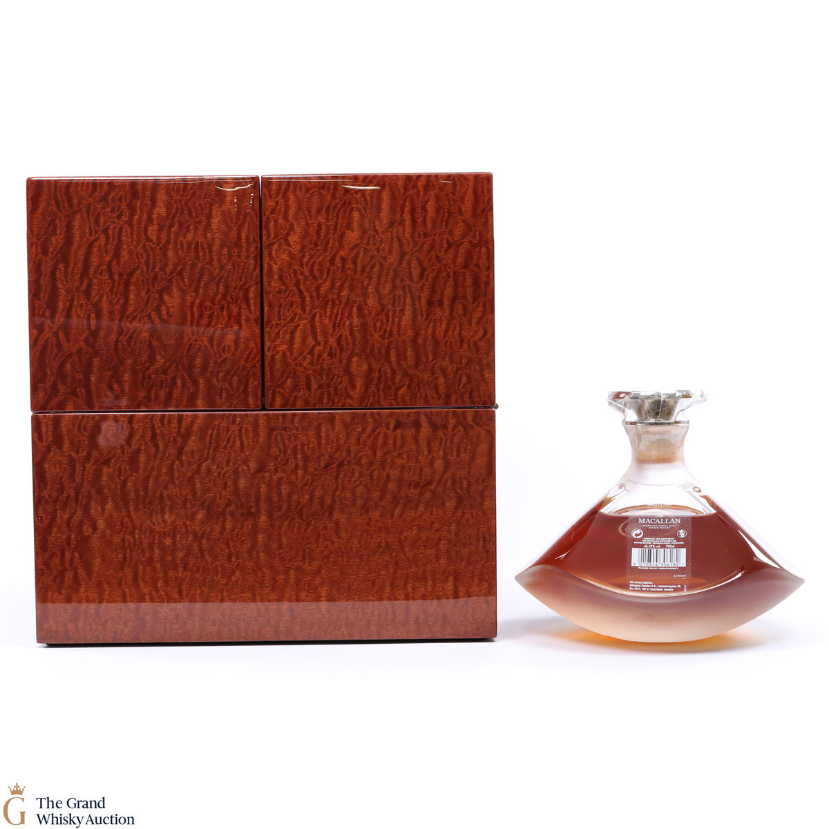 Macallan said: "Lalique has captured the character of the new Distillery in crystal, with the horizon of the decanter rising and falling in reflection of the roof line and incorporating the clean lines and natural curves. Each decanter is encased in a bespoke presentation case inspired by the interior of the Distillery, with a curved wooden roof over the decanter, and a footprint taken directly from the circular layout of the three new still houses."