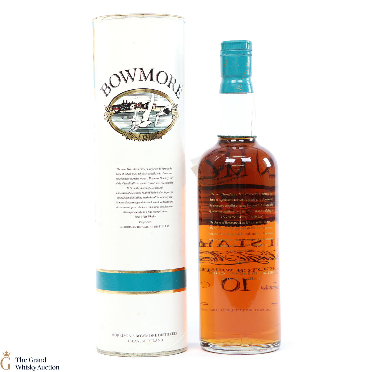 This striking older-style presentation of Bowmore 10 Year Old single malt from the now highly sought screened label bottlings that were released between 1990 and 1995.