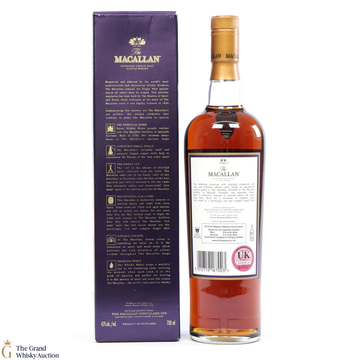Due to the various ages of bottles and their seals, the condition of liquid is at the buyer's discretion and no claim can be lodged against failure/leakage in transit. Loss and breakage cover is available at 3% of the hammer price as standard. If the lot is not insured, no claim can be lodged against the courier or The Grand Whisky Auction for breakage or loss in transit.