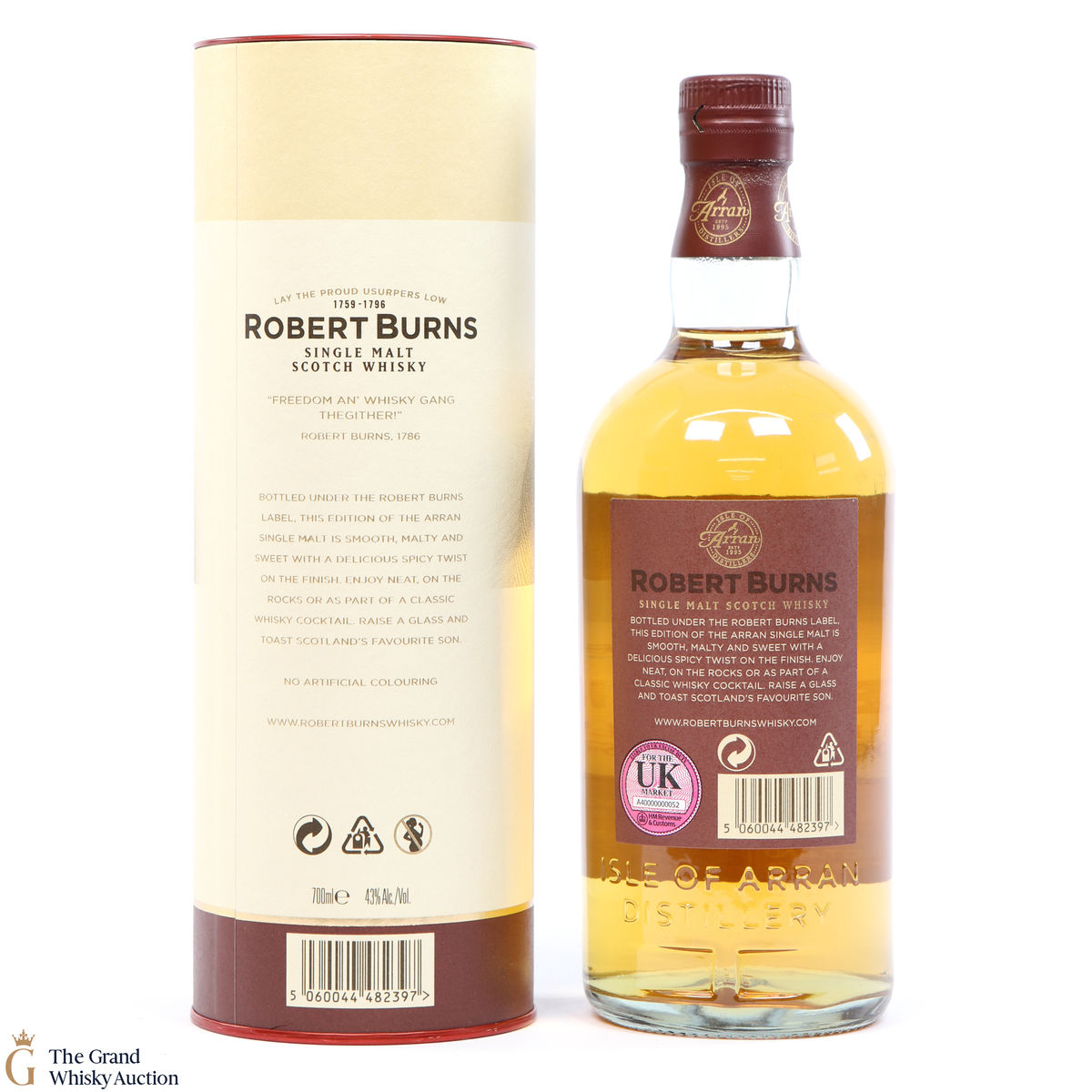 Bottled under the Robert Burns label this bottling of the Arran Single Malt is smooth, malty and sweet with a delicious spicy twist on the finish. "Raise a glass and toast Scotland favourite son."
