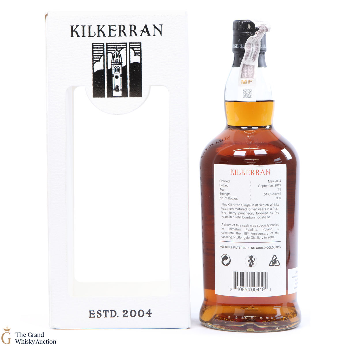 This bottling has been bottled for Miroslaw pawlina, Poland, to celebrate the 15th Anniversary of the opening of the Glengyle Distillery in 2004. It was distilled in May 2004 and bottled 15 years later in September 2019 at 51.6% ABV. There is only 336 bottles.