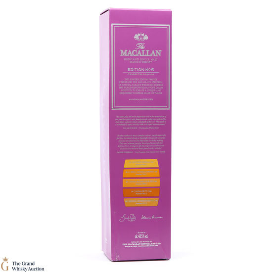 The fifth release in the Edition Series from The Macallan, The Macallan Edition No. 5 celebrates The Macallan’s extensive natural colour spectrum and the intricate whisky-making process, in partnership with masters at the Pantone Color Institute™ to create a unique shade of purple that features on the packaging.
