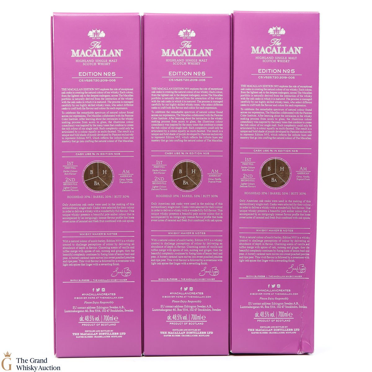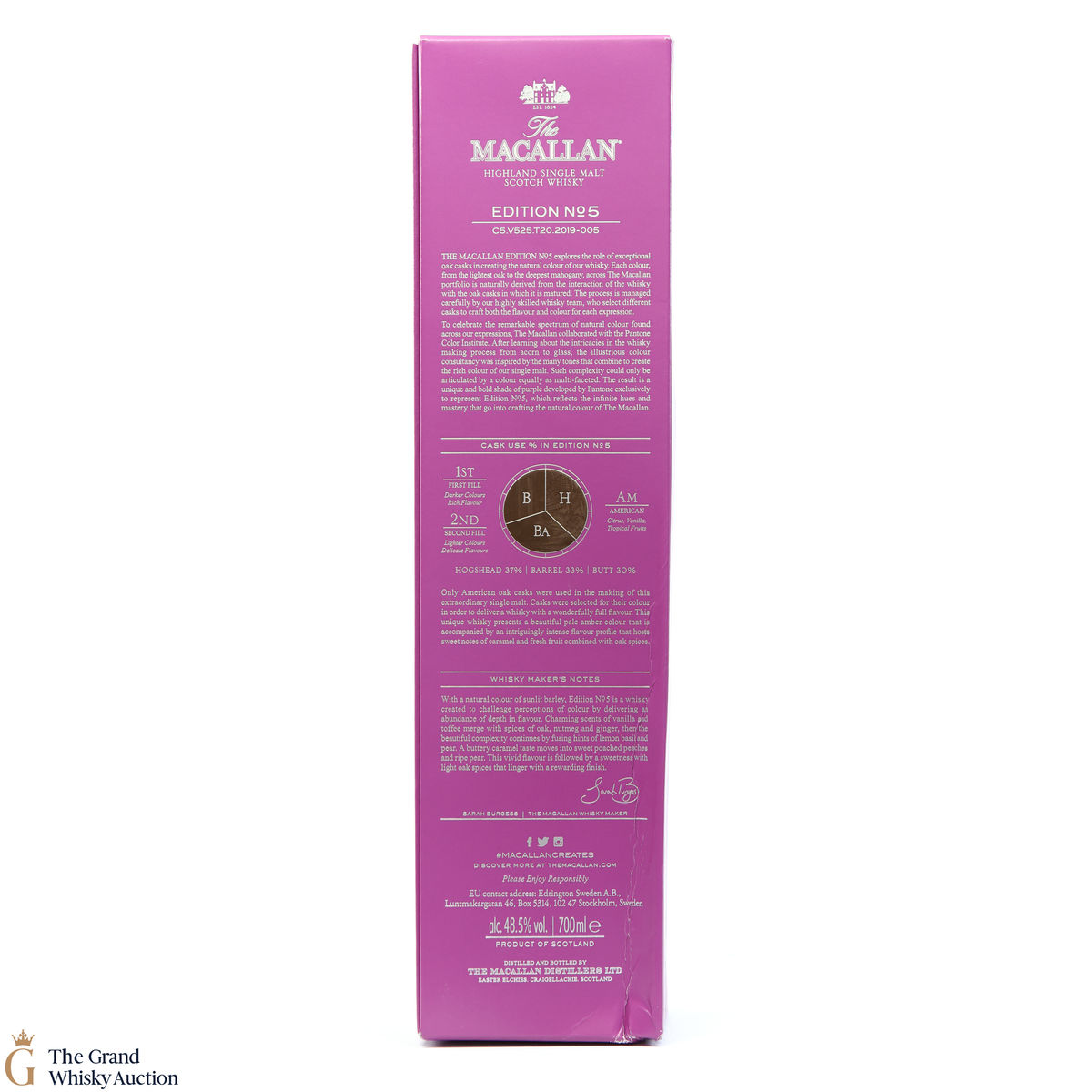 The fifth release in the Edition Series from The Macallan, The Macallan Edition No. 5 celebrates The Macallan’s extensive natural colour spectrum and the intricate whisky-making process, in partnership with masters at the Pantone Color Institute™ to create a unique shade of purple that features on the packaging.