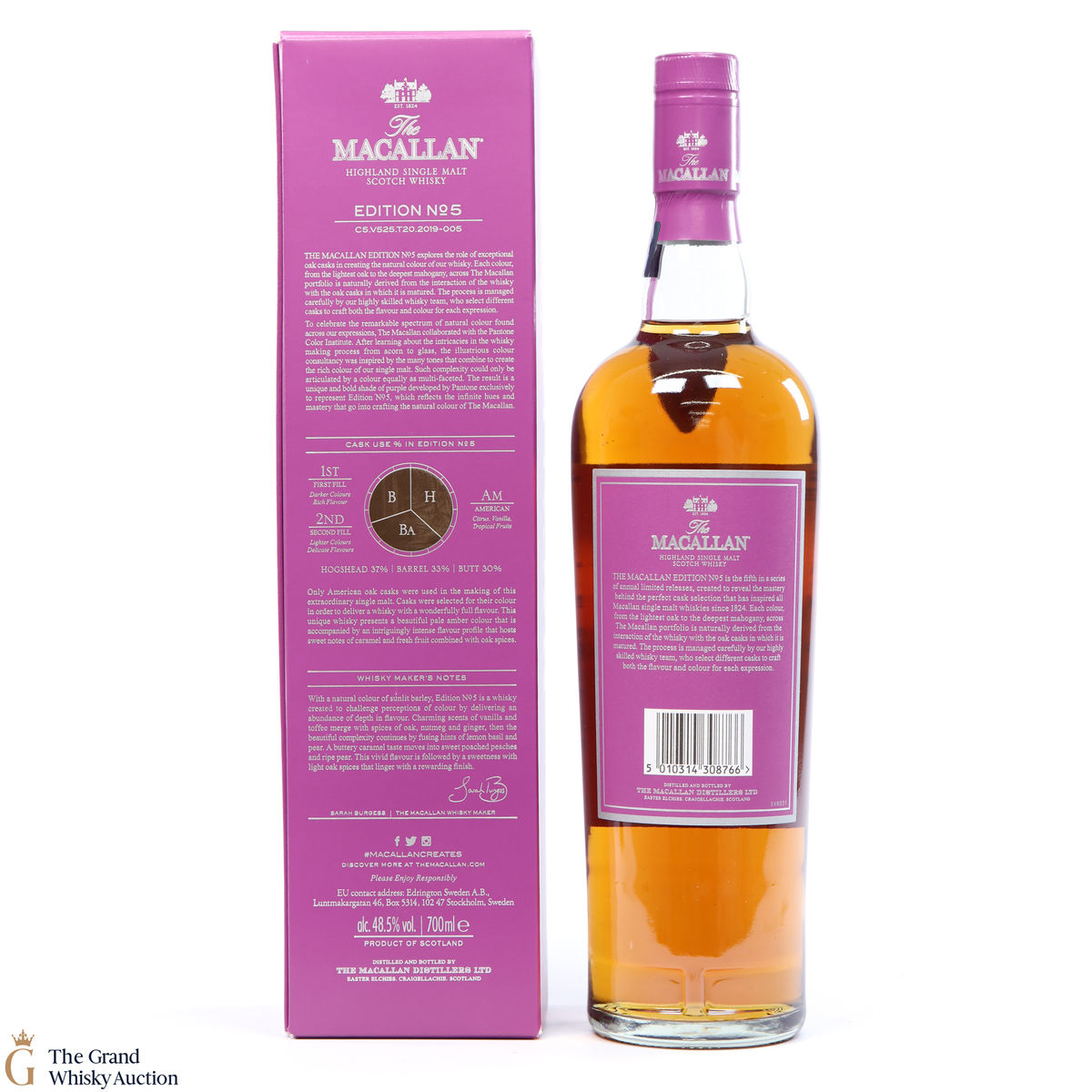 The fifth release in the Edition Series from The Macallan, The Macallan Edition No. 5 celebrates The Macallan’s extensive natural colour spectrum and the intricate whisky-making process, in partnership with masters at the Pantone Color Institute™ to create a unique shade of purple that features on the packaging.