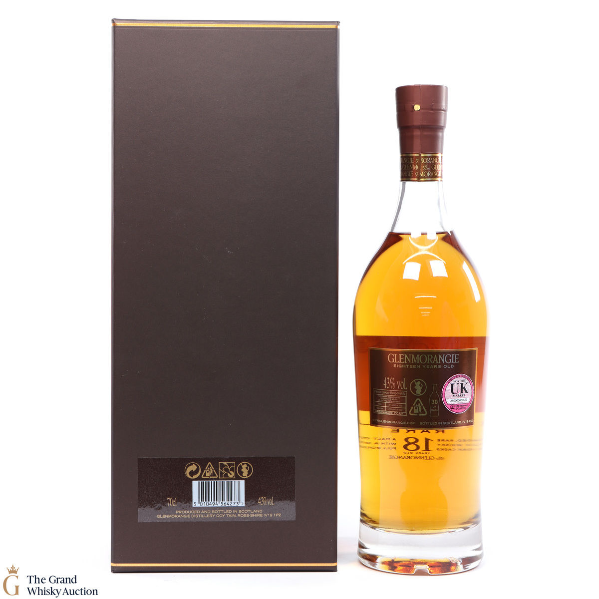This bottle is an 18 year old Extremely Rare, Highland single malt produced by Glenmorangie. It has been perfected by the sixteen men of Tain who have specially aged this bottle for 18 years in superior oak casks and a period in Oloroso Sherry casks.