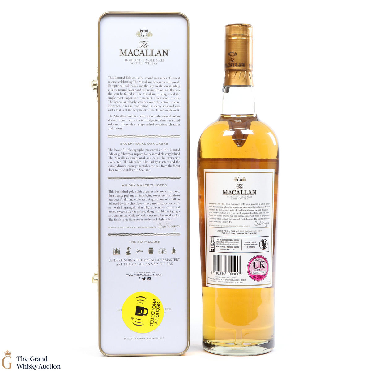 Macallan Gold was released in late 2012 as part of a series of colour-themed bottlings introduced to replace the distillery's age-statement expressions. Produced from 9-15yo first fill and refill sherry casks, it was designed to sit between the now-defunct 10yo Sherry Oak and 10yo Fine Oak bottlings.