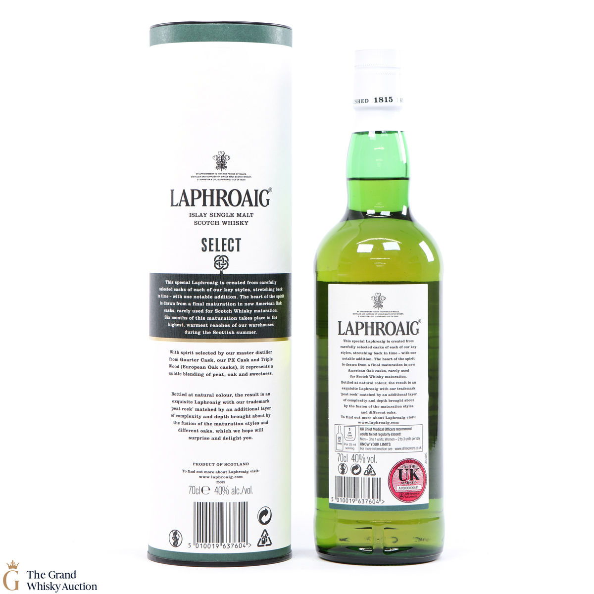 Laphroaig Select has been created using a combination of whisky from a number of different types of cask, including Oloroso Sherry butts, white American oak, Pedro Ximenez seasoned hogsheads, quarter casks and first-fill bourbon casks.