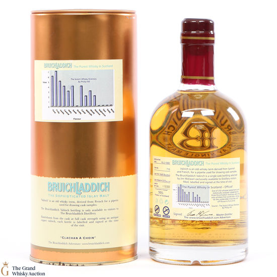 A 1990 vintage cask strength valinch in celebrating three Bruichladdich bottlings being blind-tasted and statistically analysed and found to zero ratings for undesirable impurities or off-flavours of any kind - the only three to do so of 350 whiskies tasted.