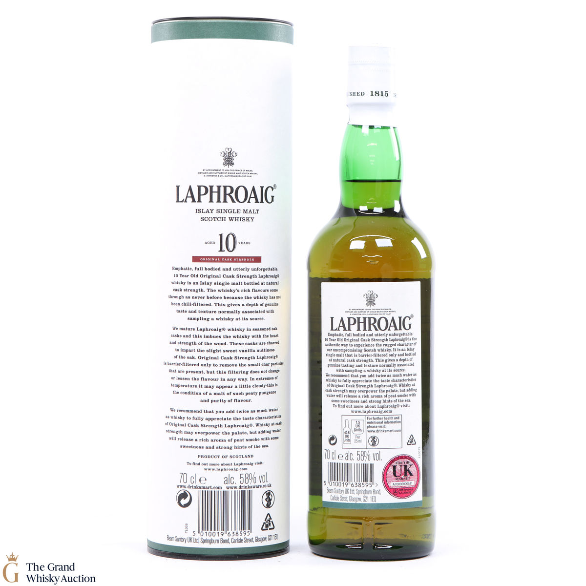 This original cask strength bottling of the medicinal 10 year old from Islay's bestselling distillery, Laphroaig. In making Laphroaig, malted barley is dried over a peat fire. The smoke from this peat, found only on Islay, gives Laphroaig its particularly rich flavour.
