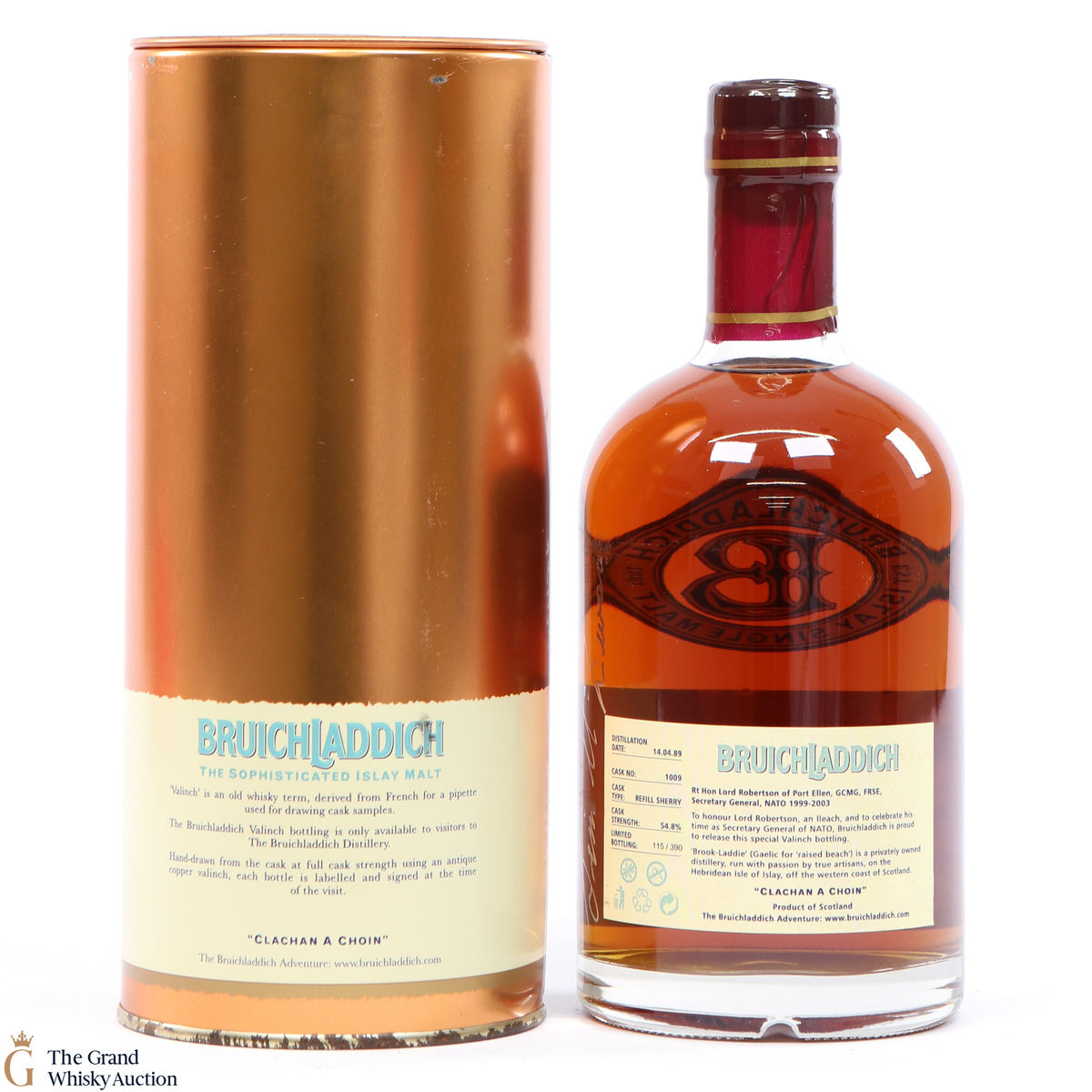 It bears a label that shows Lord Robertson of Port Ellen. This Valinch was matured in refill sherry cask number #1009 and only 390 were produced.