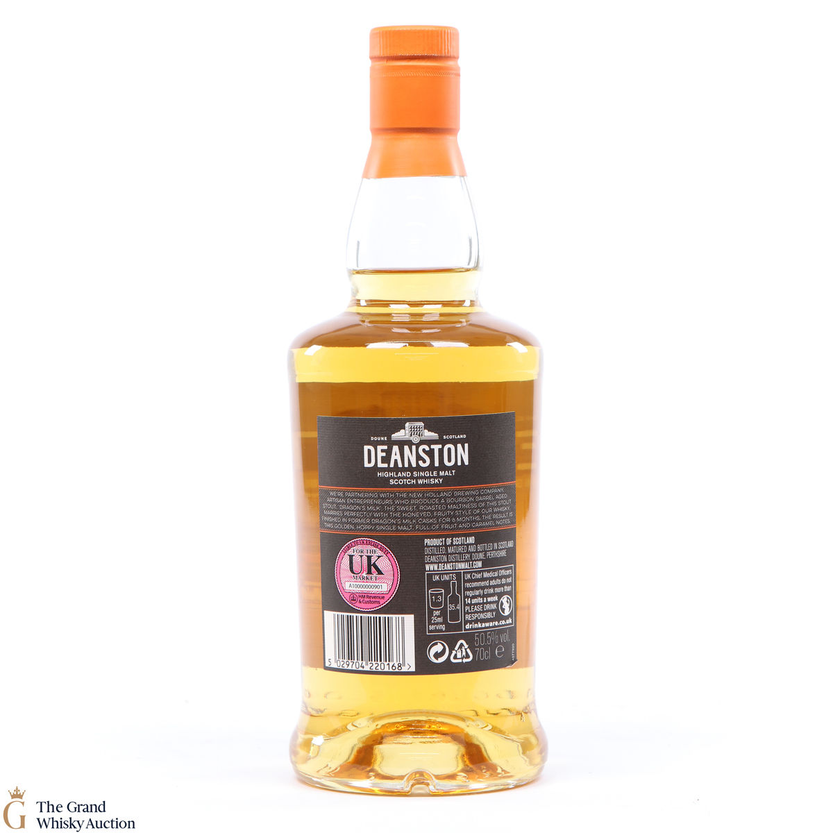 Deanston Stout Cask Finish uses barrels from Dragon’s Milk, a stout beer from the New Holland Brewing Company in Michigan which uses bourbon barrels for maturation. These are then passed on to Deanston for a six-month finish. Bottled at 50.5% ABV.