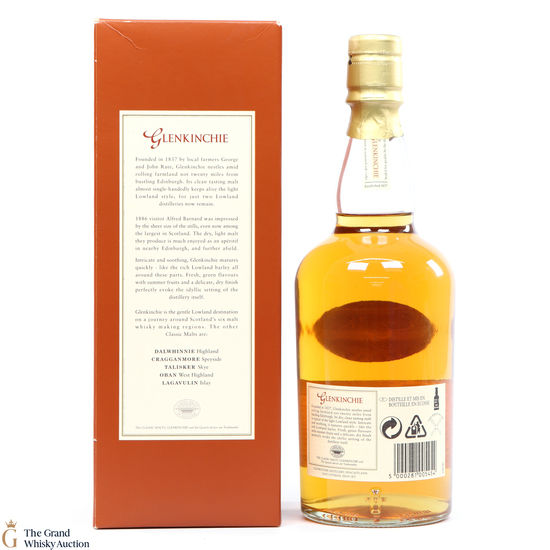 This 10 year old is an older style bottling from Glenkinchie Distillery, that comes presented in the famous orange box - with the classic malt stamp on the front of the box. The Glenkinchie 10 year old has since been replaced by the 12 year old.