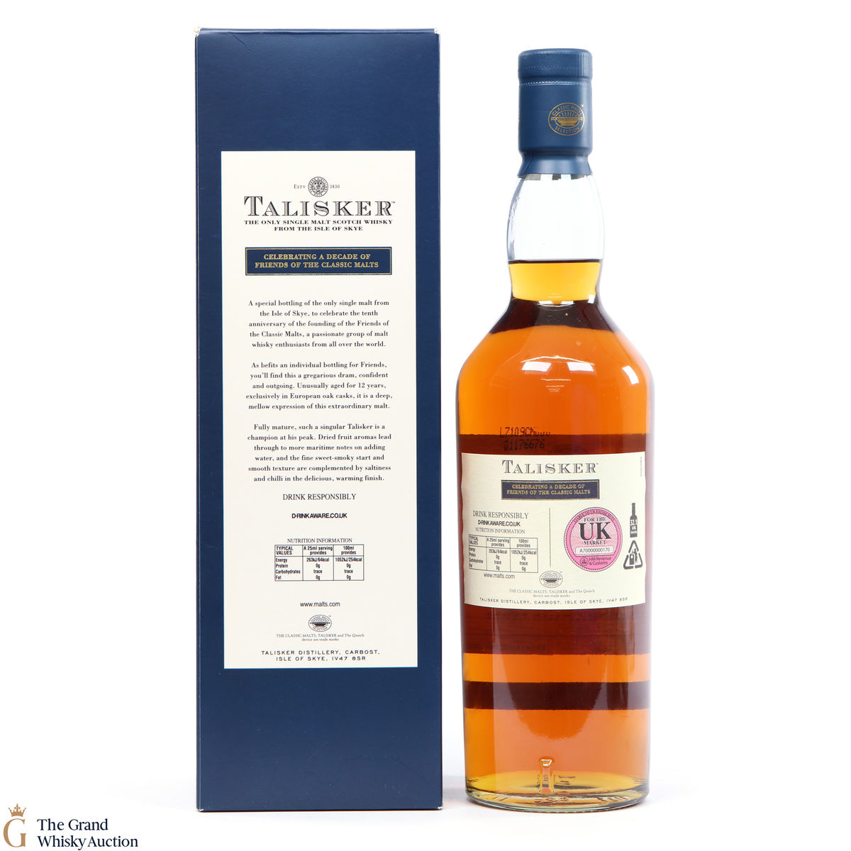 A special bottling to celebrate 10 years of the Friends of the Classic Malts, this is a 12-year-old bottled at the classic Talisker strength of 45.8%. Bottled in 2007.