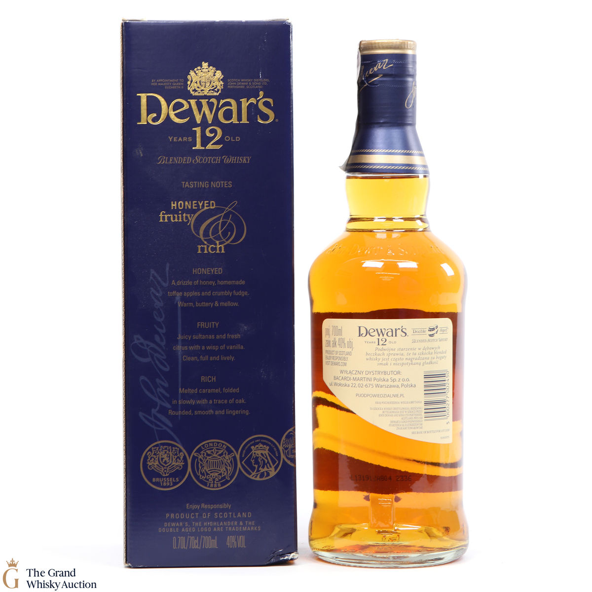 Due to the various ages of bottles and their seals, the condition of liquid is at the buyer's discretion and no claim can be lodged against failure/leakage in transit. Loss and breakage cover is available at 3% of the hammer price as standard. If the lot is not insured, no claim can be lodged against the courier or The Grand Whisky Auction for breakage or loss in transit.