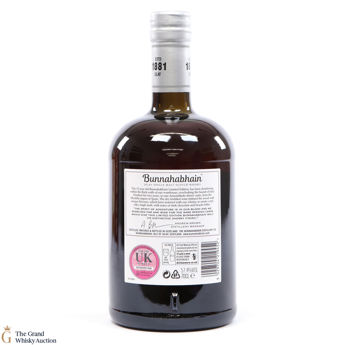 This is a 2019 distillery exclusive from Bunnahabhain Distillery. This Amontillado Cask Finish limited edition started life on the 20th of February 2003 in refill hogsheads before being transferred to Amontillado sherry hogsheads on the 26th of February 2016 where it spent two more years maturing in Bunnahabhain's coastal warehouses.