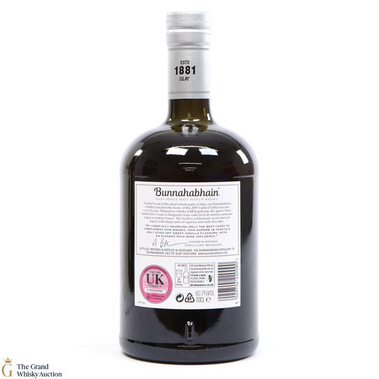 This Bunnahabhain was distilled in late 2005 and was matured in refill whisky hogsheads before being transferred Burgundy wine casks for the rest of the maturation period. This is one of 600 bottles.