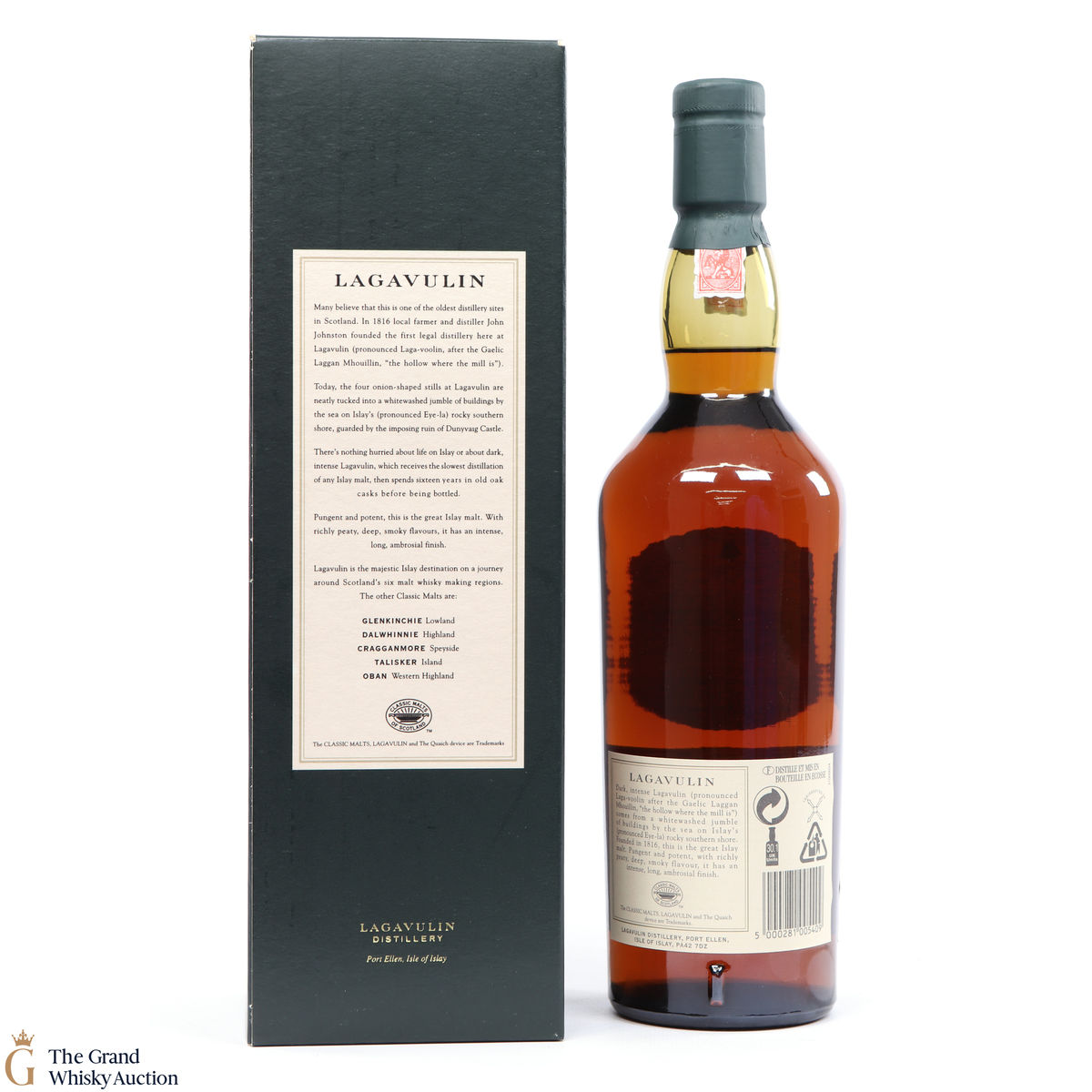This is a popular and much sought-after single malt with the massive peat-smoke that's typical of southern Islay - but also offering richness and a dryness that turns it into a truly interesting tipple. The 16 year old, aged in oak casks has truly become a benchmark Islay dram from the Lagavulin distillery.
