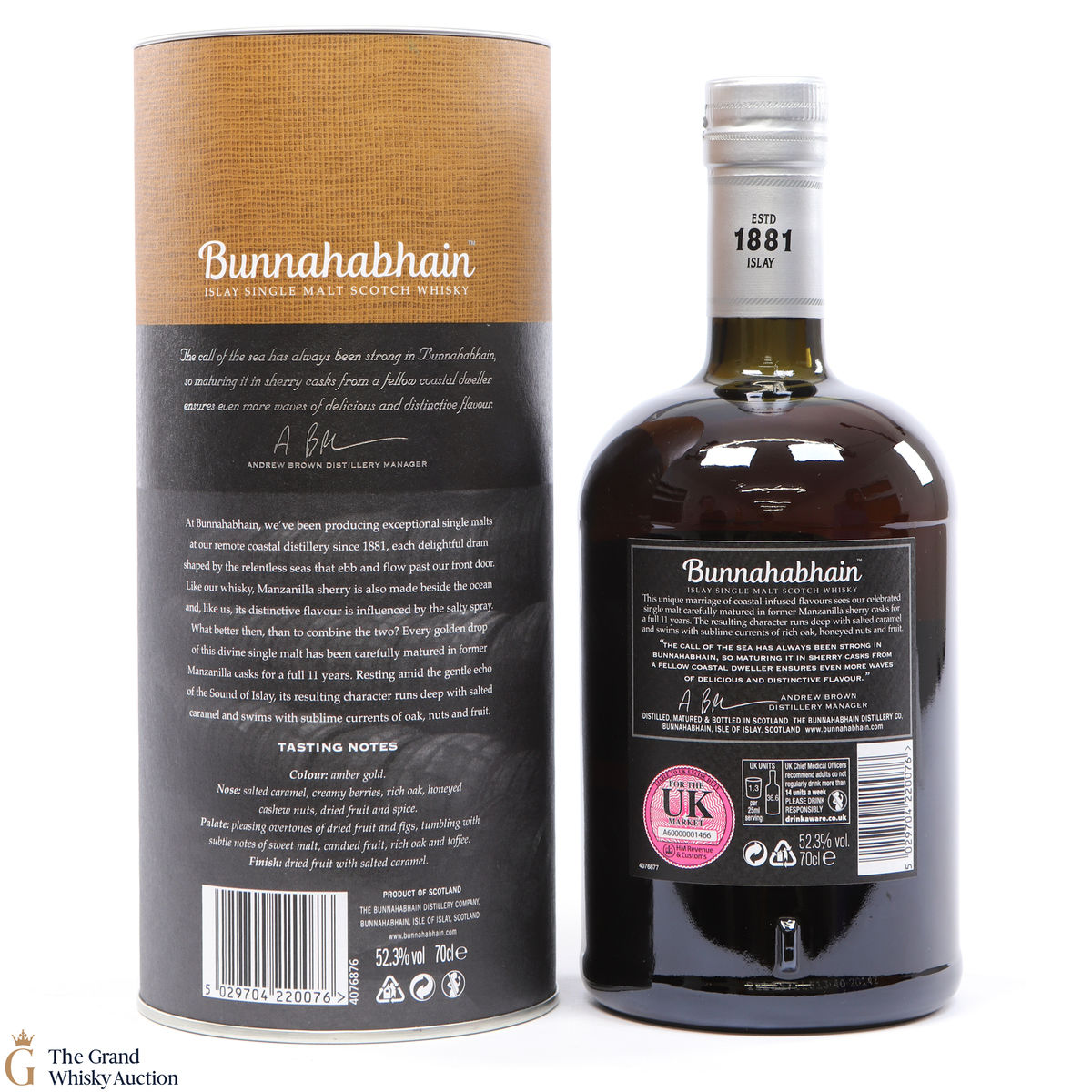 This limited release from Bunnahabhain and is a 2008 vintage Manzanilla cask matured single malt. Bottled in May 2020 at 52.3%. This 11-Year-Old, matured in warehouse 9 has rich flavours of nuts, fruits and toffee, with a salted caramel finish.