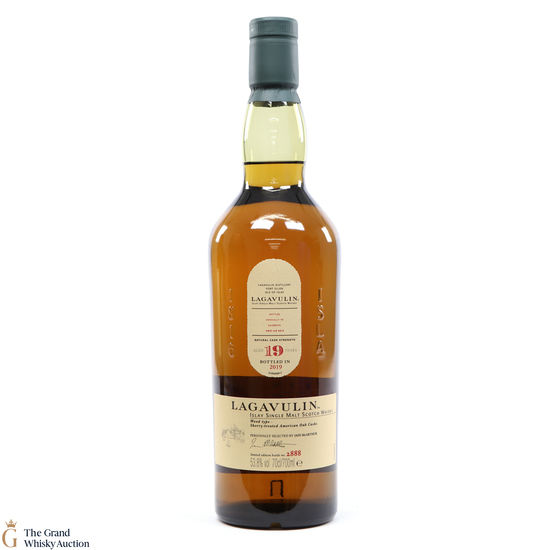 The 2019 Fèis Ìle release from Lagavulin was a 19 year old single malt, matured in three types of casks: refill American oak cask, second Sherry treated American oak cask and a European oak puncheon. 6000 bottles were released.