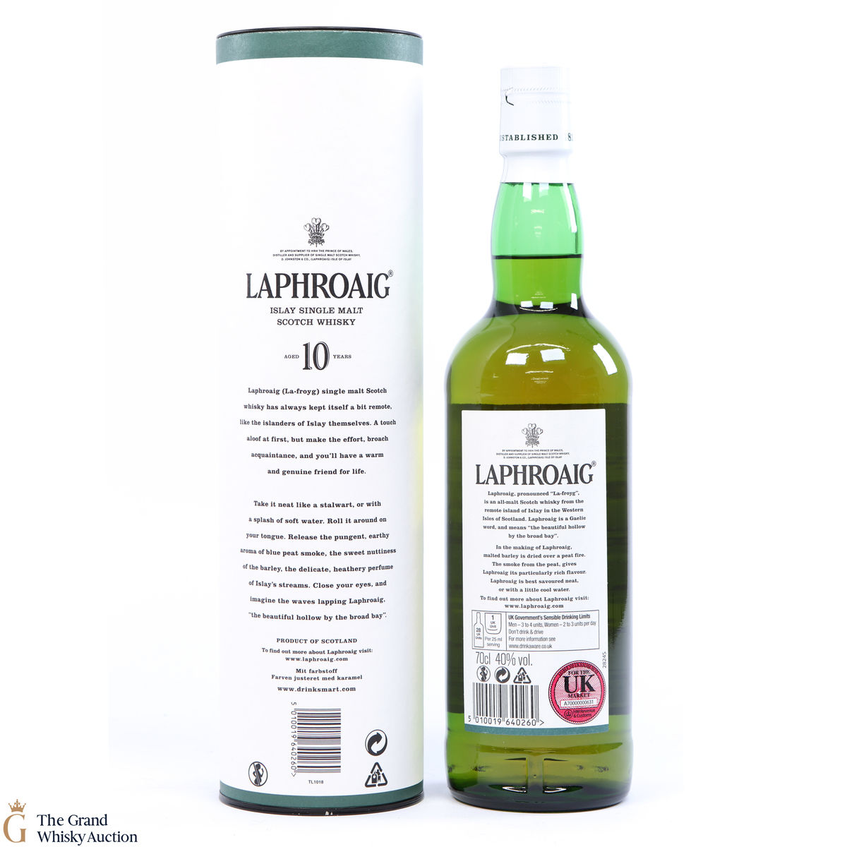 A 70cl of the medicinal 10 year old from Islay's bestselling distillery, Laphroaig. In making Laphroaig, malted barley is dried over a peat fire. The smoke from this peat, found only on Islay, gives Laphroaig its particularly rich flavour.