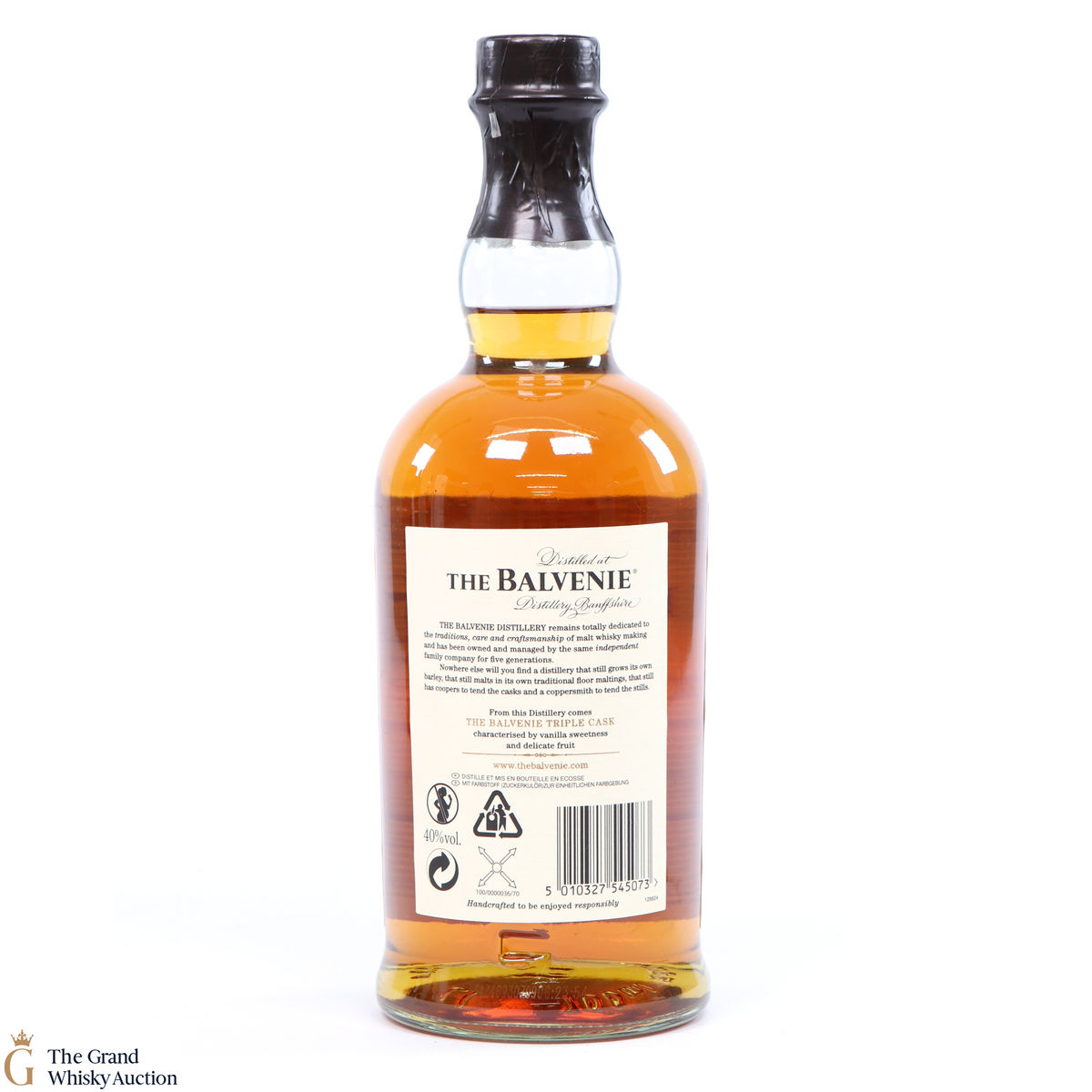 Due to the various ages of bottles and their seals, the condition of liquid is at the buyer's discretion and no claim can be lodged against failure/leakage in transit. Loss and breakage cover is available at 3% of the hammer price as standard. If the lot is not insured, no claim can be lodged against the courier or The Grand Whisky Auction for breakage or loss in transit.