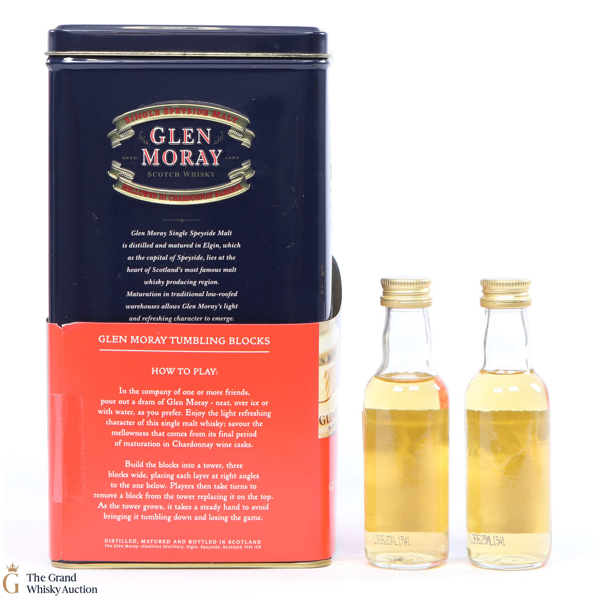 This Special Gift Pack contains two Glen Moray Chardonnay finish miniatures and a 'Tumbling Blocks' tower.