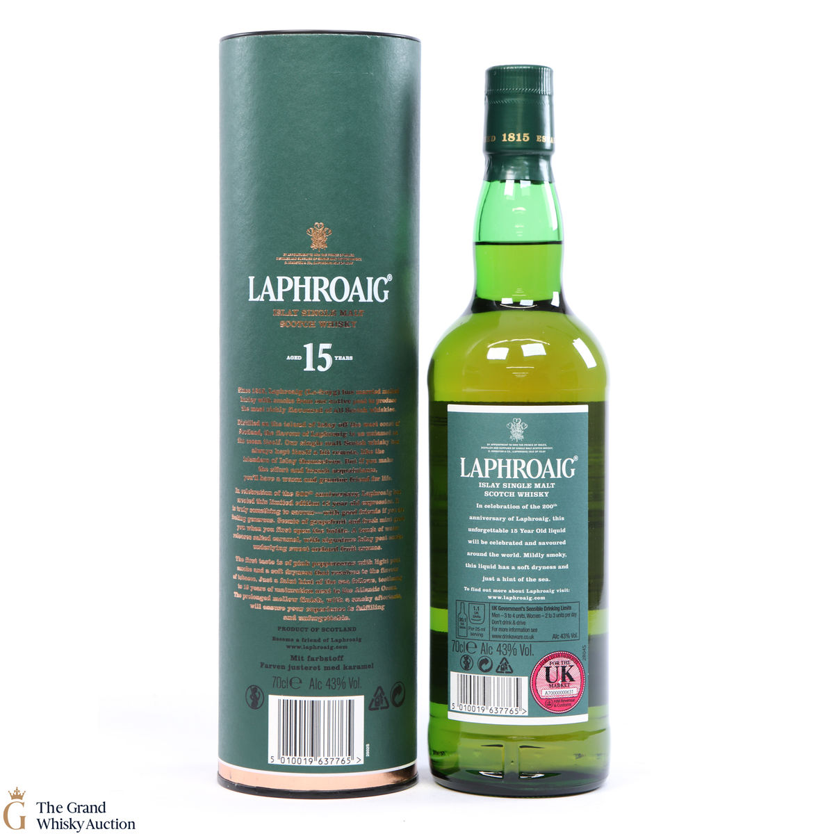 A smart old bottle of Laphroaig, bottled in the mid to late 1990s, after the award of the Royal Warrant in 1994. Laphroaig 15 Year Old is smoother than the robust 10-year-old.