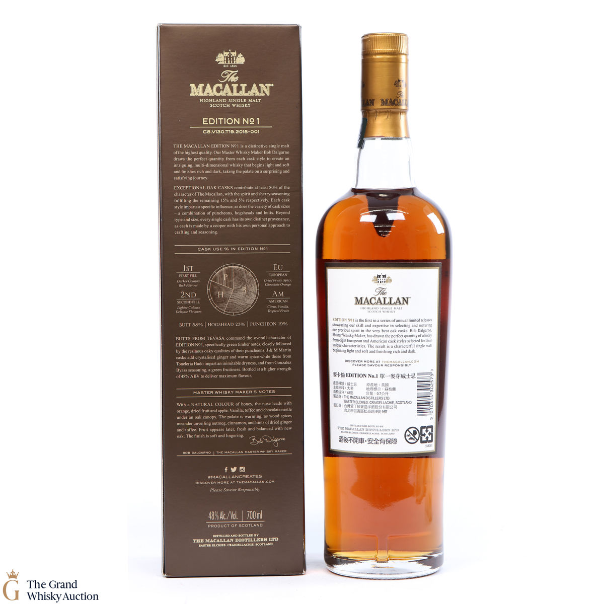 The Macallan Edition No. 1 is the debut expression in the Edition Series. This is a limited edition drawn from eight European and American oak cask styles selected for their unique characteristics.