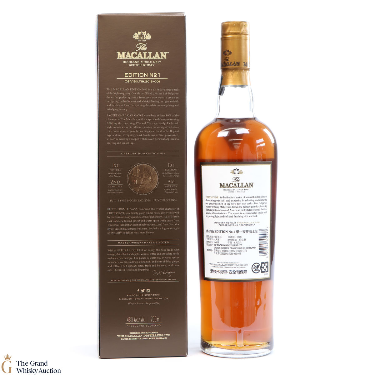 The Macallan Edition No. 1 is the debut expression in the Edition Series. This is a limited edition drawn from eight European and American oak cask styles selected for their unique characteristics.