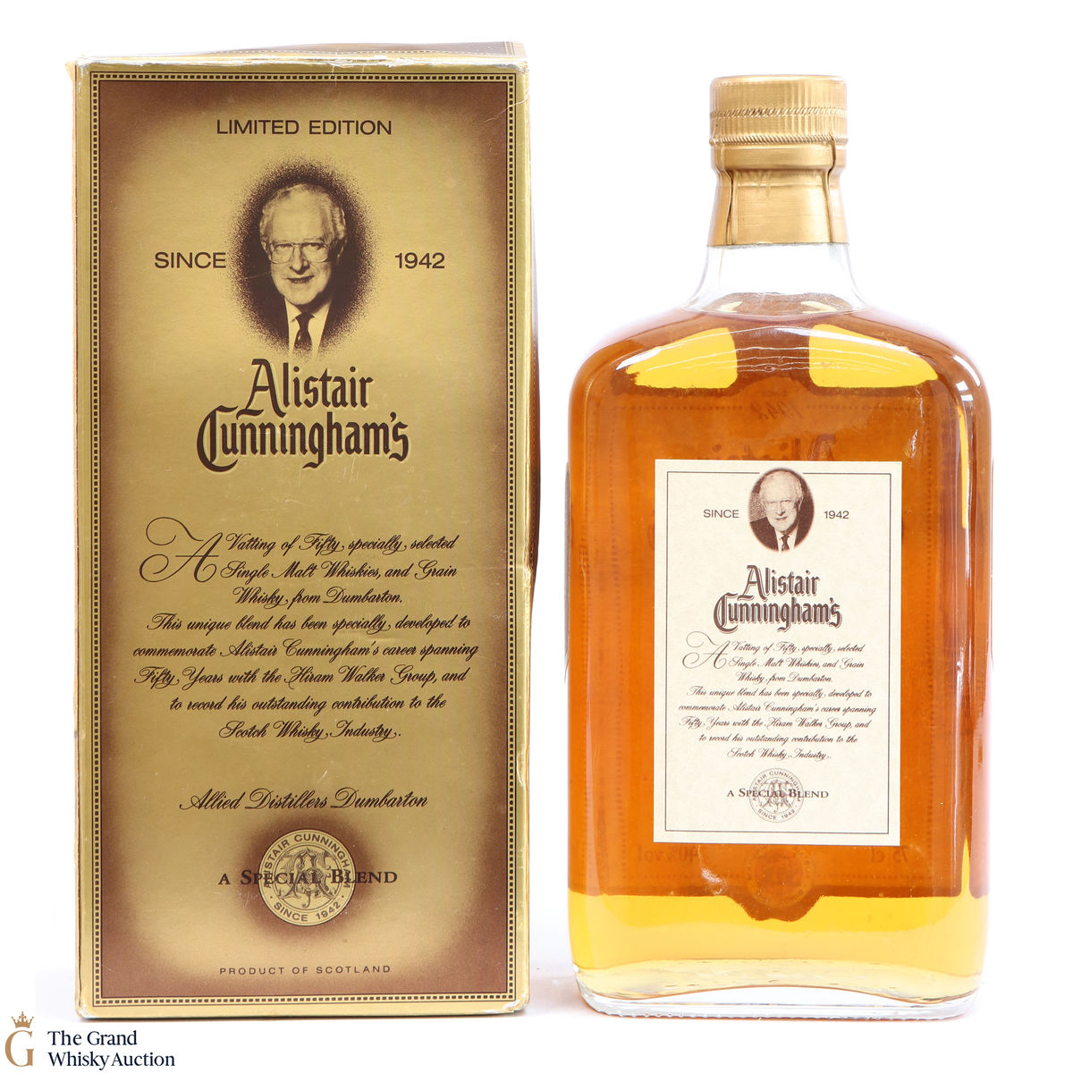 A special edition blended whisky from Hiram Walker to commemorate Alistair Cunningham's 50th year with the company in 1995. It's not a 50 year old whisky, but instead a blend of 50 malt whiskies and grain from Dumbarton. This is a 75cl bottling.