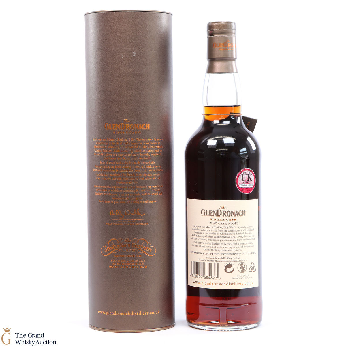 Aged in a single Oloroso sherry butt for 24 years, this rare 1992 vintage bottling of Glendronach is a UK exclusive boasting a mixture of spicy notes and herbal character. Bottled in 2016, this is one of 644 individually numbered bottles.