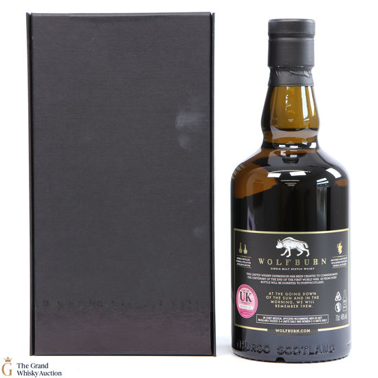 A limited edition from Wolfburn Distillery to commemorate the 100th anniversary of the end of The First World War. A total of 1918 bottles were produced and sold exclusively from the distillery and through the Carnegie Whisky Cellars in Dornoch. This project is important to both companies and was proposed to Wolfburn Distillery due to the owners of Wolfburn being former British Servicemen and the importance of the Poppy Appeal to all service personnel and their families.