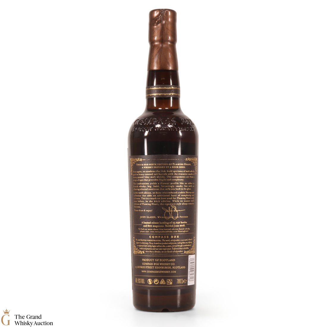 This the 2018 limited edition bottling of Flaming Heart blended malt by Compass Box. It is smokey and delicious and said to have notes of Caol Ila, Clynelish and Deanston and more. This is one of 15,050 bottles released and 800 magnums - bottled in June 2018.