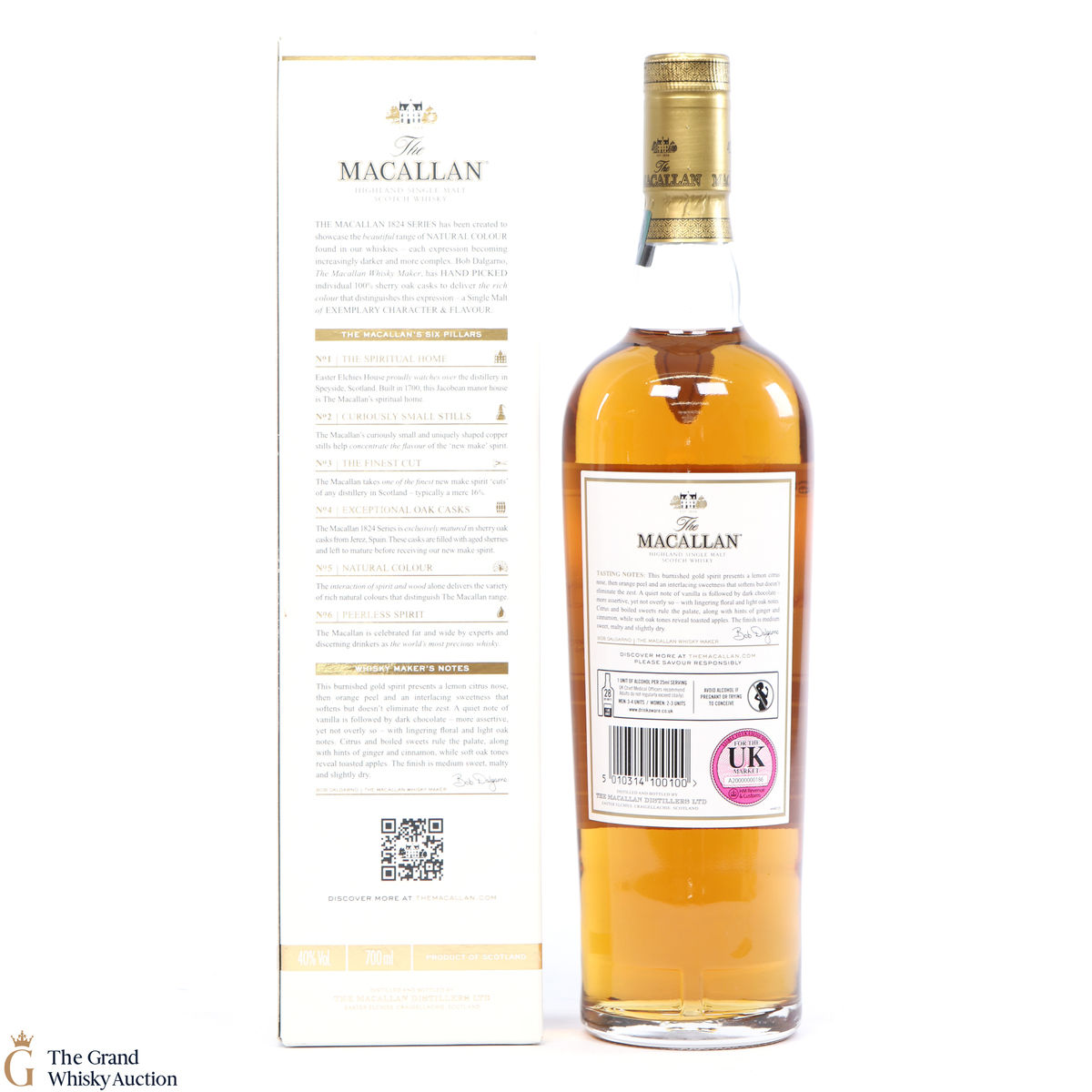 The Macallan 1824 Series celebrates natural colour. The most distinctive and defining characteristic of Macallan is the sherry-seasoned oak casks that are used to mature the whisky. This series shows commitment to 100% natural colour, drawn from wood. The colour of each expression becomes deeper as the range progresses.