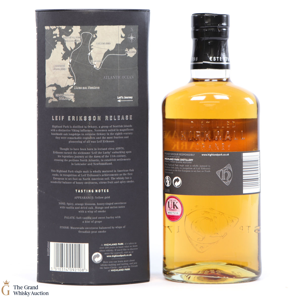Launched in March 2010, for the travel retail market, Highland Park Leif Eriksson Limited Edition was released to celebrate the first European to reach America over a thousand years ago. The single malt was matured in American oak casks, both ex-bourbon and ex-sherry in recognition of Leif Eriksson, a pioneering Viking explorer, as the first European man to set foot on American soil.